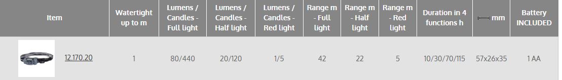 Fitted with 2 x Nichia high-efficiency LEDs. Shock-proof and watertight. Four operating modes: full light, half light, red light, red flashing light.