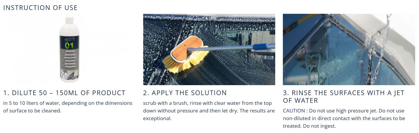 AUTODRY SHAMPOO PERLOBAN® developed to facilitate the maintenance of all boat surfaces. Its technology called Perloban®, releases the active ingredients facilitating the self-drying, in addition to the conventional classical washing characteristics. This solution deploys a water film uniform to rinse, allowing the drying and water evaporation in a homogeneous way. With a full control of the steps of surface maintenance, the AUTODRY SHAMPOO PERLOBAN® components prevent the appearance of limestone traces or various salts, usually present after cleaning.