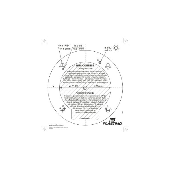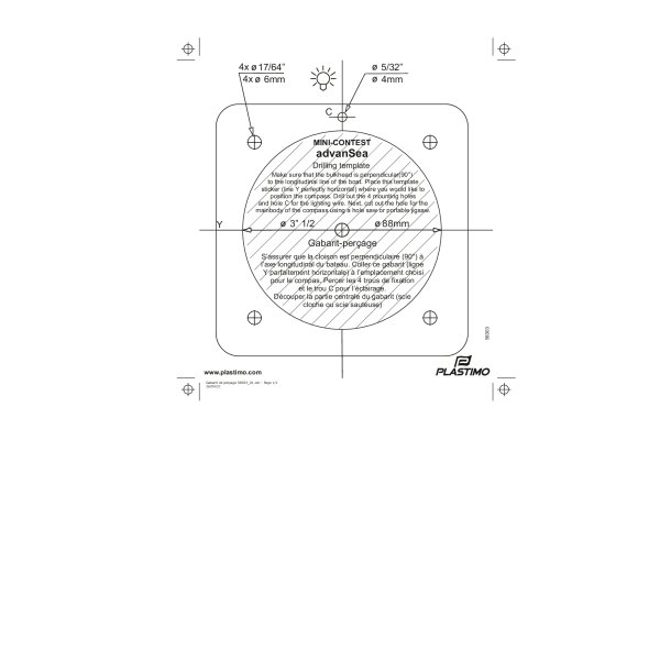 - Standard thickness (40 mm max) : the compass is secured with threaded rods- Thick or double bulkhead : the compass is secured with Parker screws on both sides of the bulkhead.Options & accessoriesProtective cover Mini-Contest : black 55599Compensation : 17673