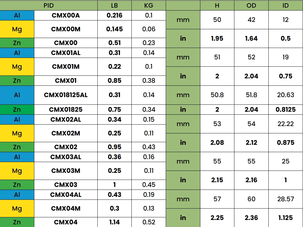 Martyr CMX Shaft Anode is a 2 pieces anode that comes complete with stainless steel hardware including lock washers. It has 3 clever design elements that make it the most successful and popular product in the market, features include interlocking halves (for the best fit); circular inside diameter (ensures a tight fit); extra alloy around the fasteners (stays on longer that standard types).