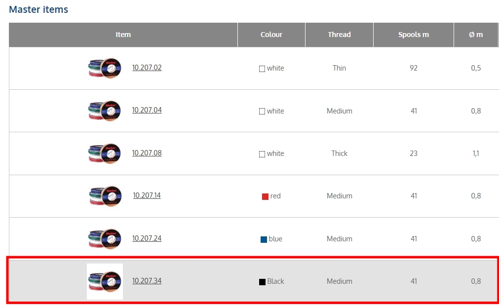 Master Item description:Suitable for sewing sails and splicing lines, plastic spools. Made of waxed polyester